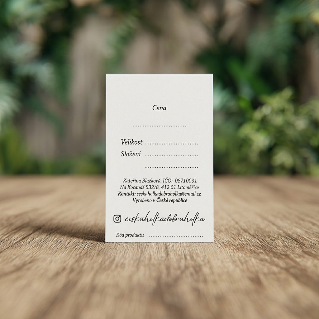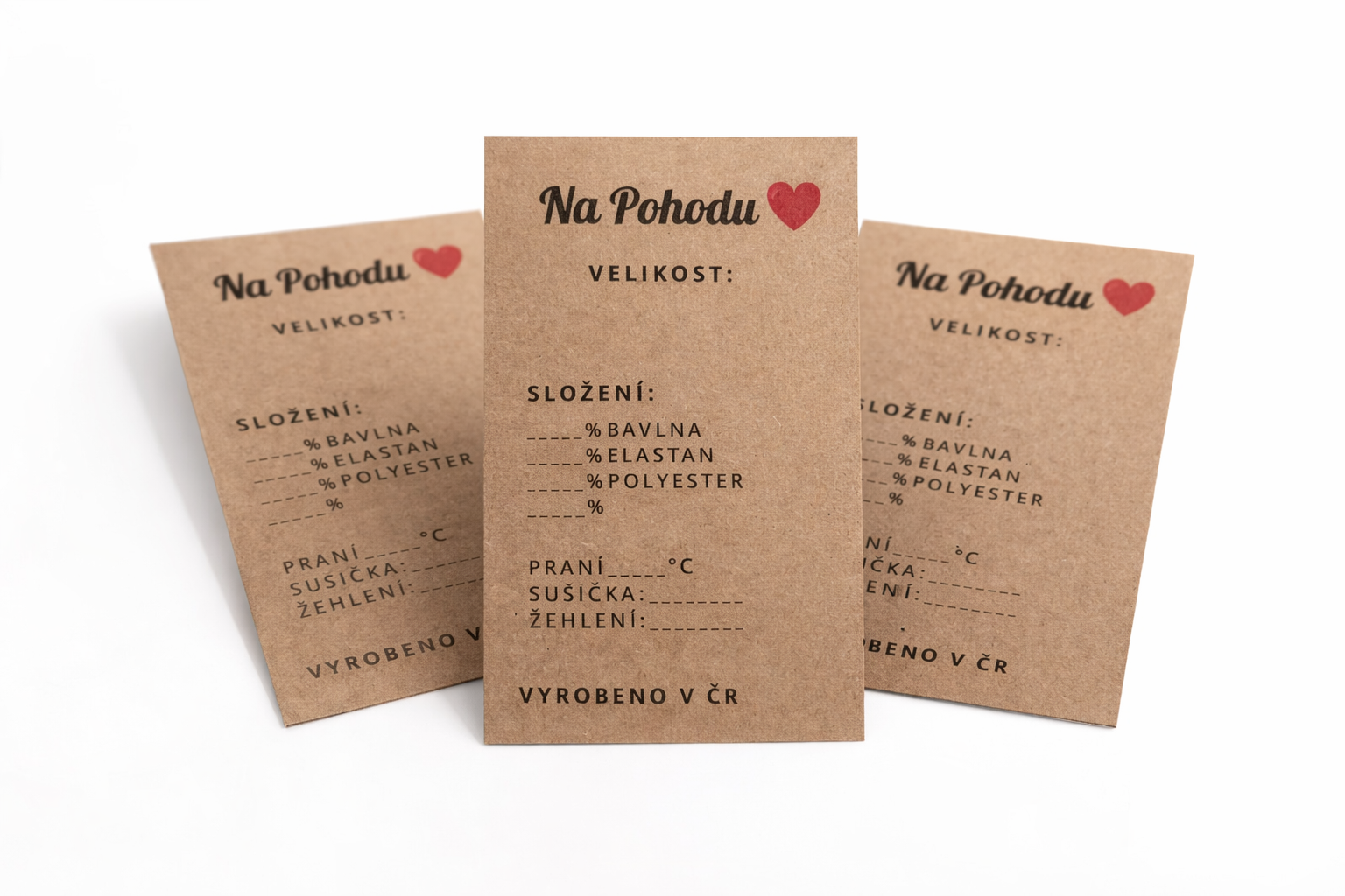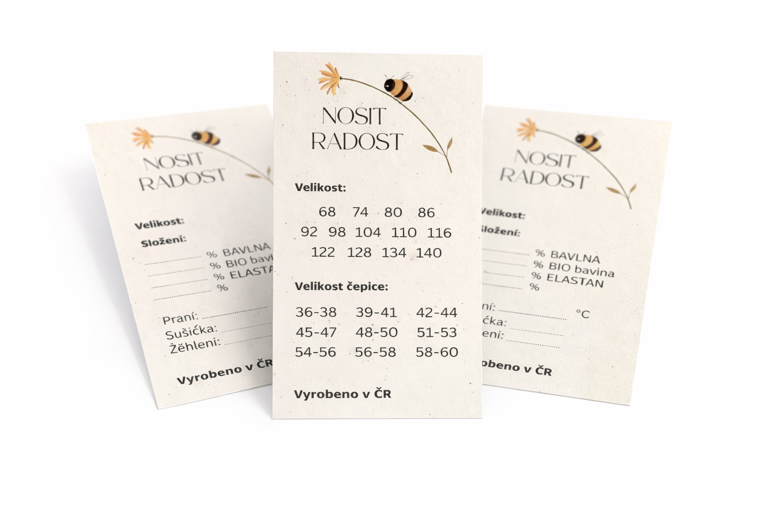 Velikostní kartičky, díky kterým máš v balení pořádek a značka působí profesionálně.